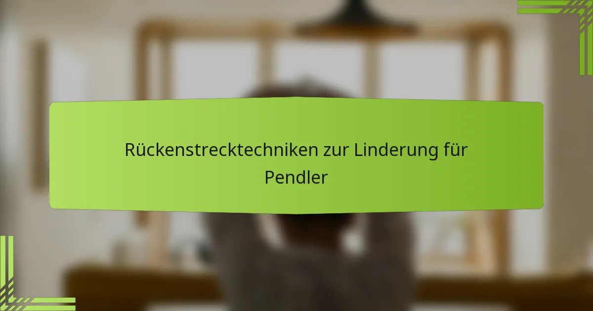 Zu den gängigen Techniken gehören sanfte Drehungen, Vorbeugen und seitliche Dehnungen. Jede dieser Übungen kann in verschiedenen Umgebungen durchgeführt werden, was sie für Pendler zugänglich macht. Es ist wichtig, auf Ihren Körper zu hören und Überdehnungen zu vermeiden, um Verletzungen zu verhindern.